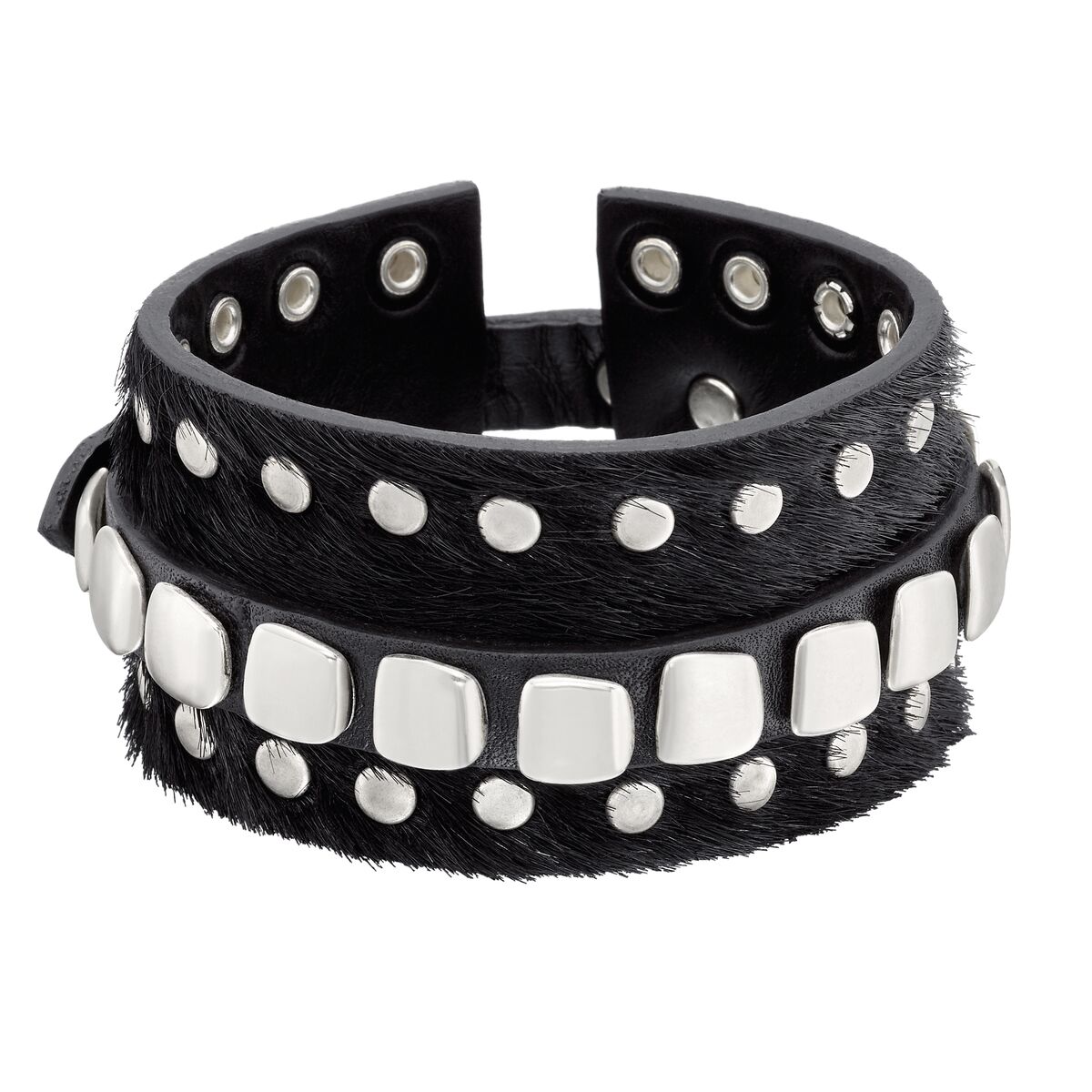 Особенности Кожаный браслет широкий черный с серебряными вставками UNOde50 Taint-ed