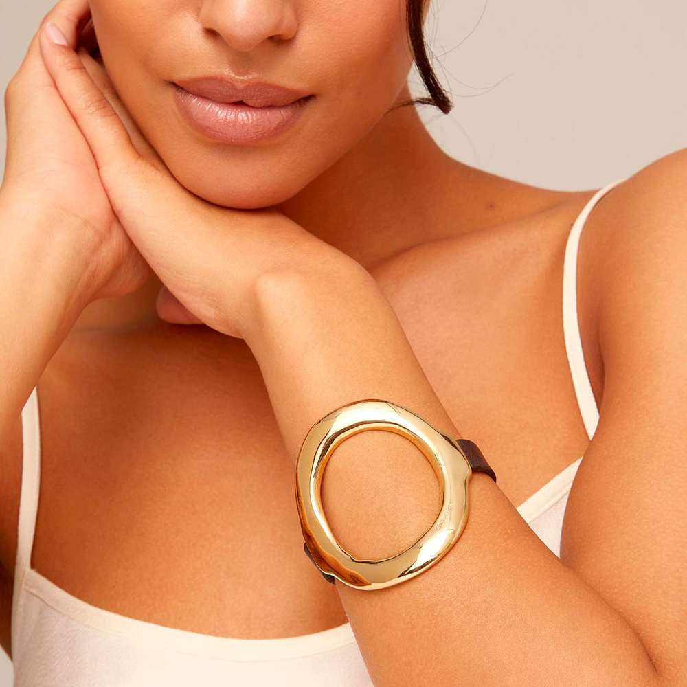 Золотой браслет женский с натуральной кожей UNOde50 Thankful