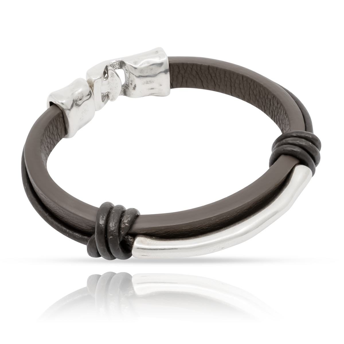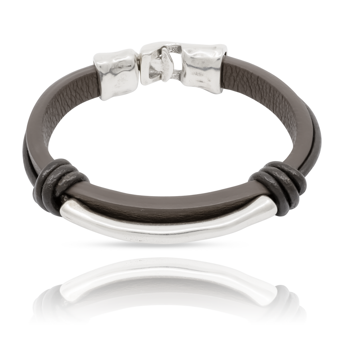 Кожаный браслет мужской с серебром Вот так UNOde50 That's it