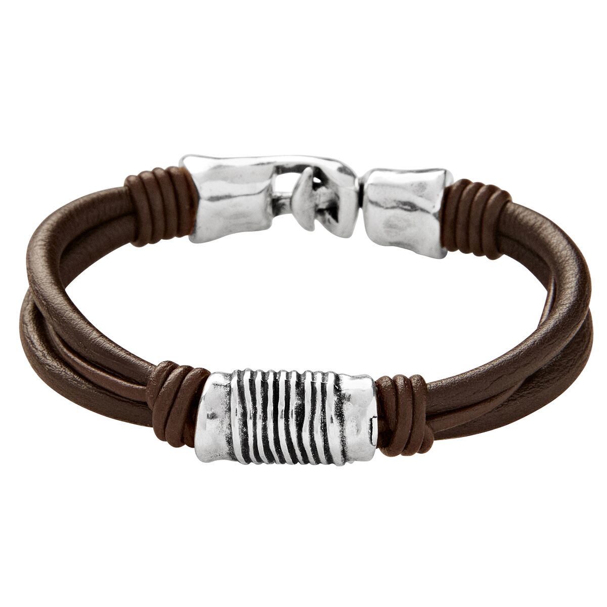 Кожаный браслет мужской с серебряными вставками UNOde50 The loop