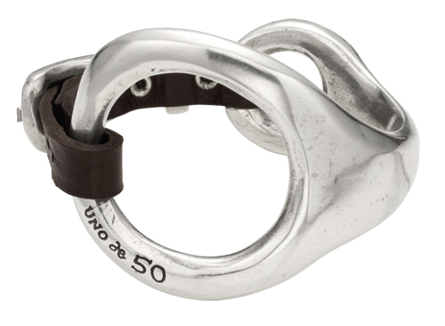 Жесткий браслет из серебра и кожи UNOde50 Through the magnifying glass
