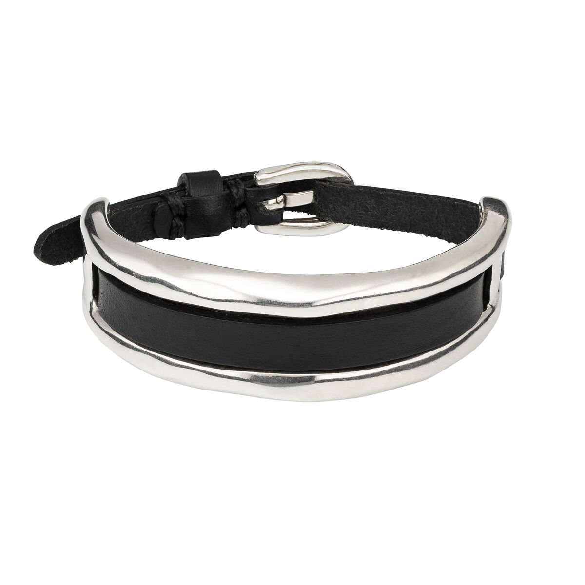 Кожаный браслет с серебряными вставками UnoDe50 Total black