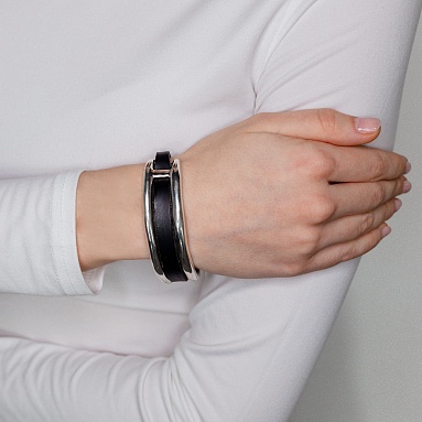 Описание Кожаный браслет с серебряными вставками UnoDe50 Total black