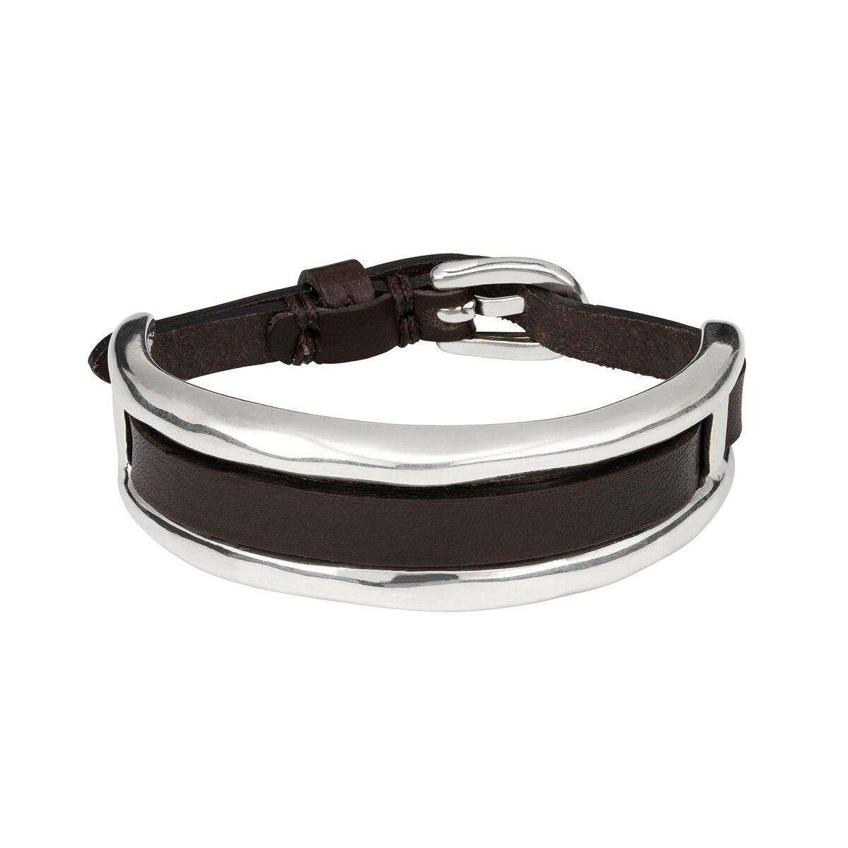 Кожаный браслет с серебряными вставками UNOde50Total black