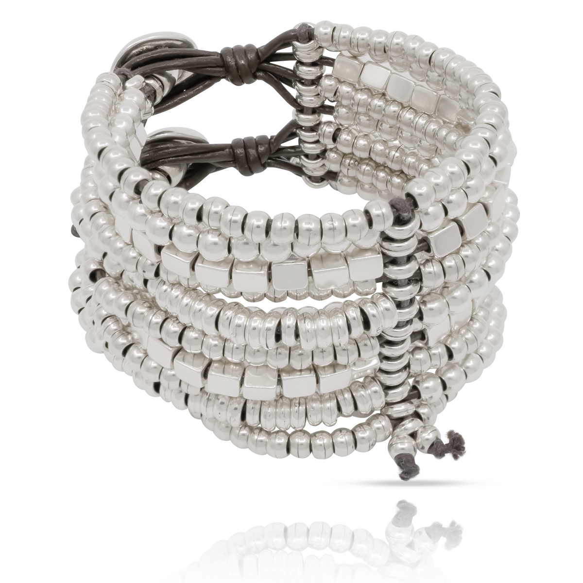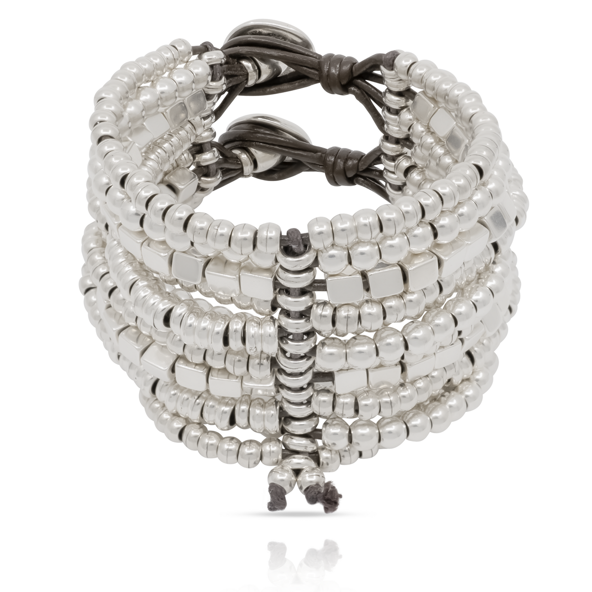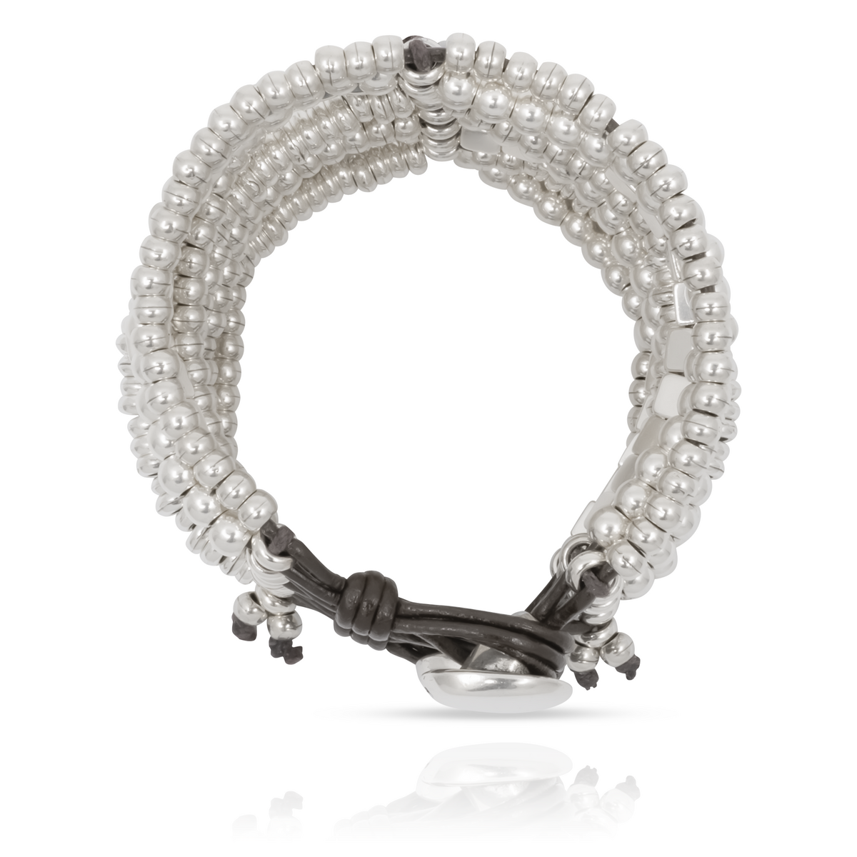 Серебряный браслет женский из бусин на коже UNOde50 Trivial