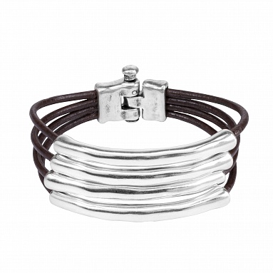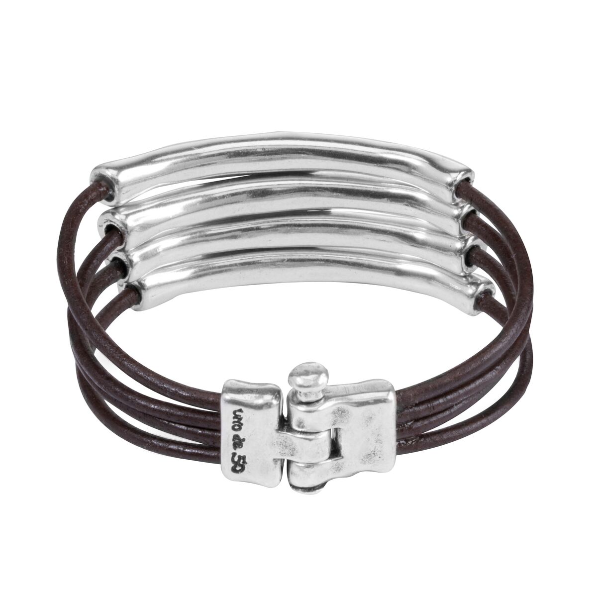Кожаный браслет с серебряными вставками женский UNOde50 Tu-Bi-hing