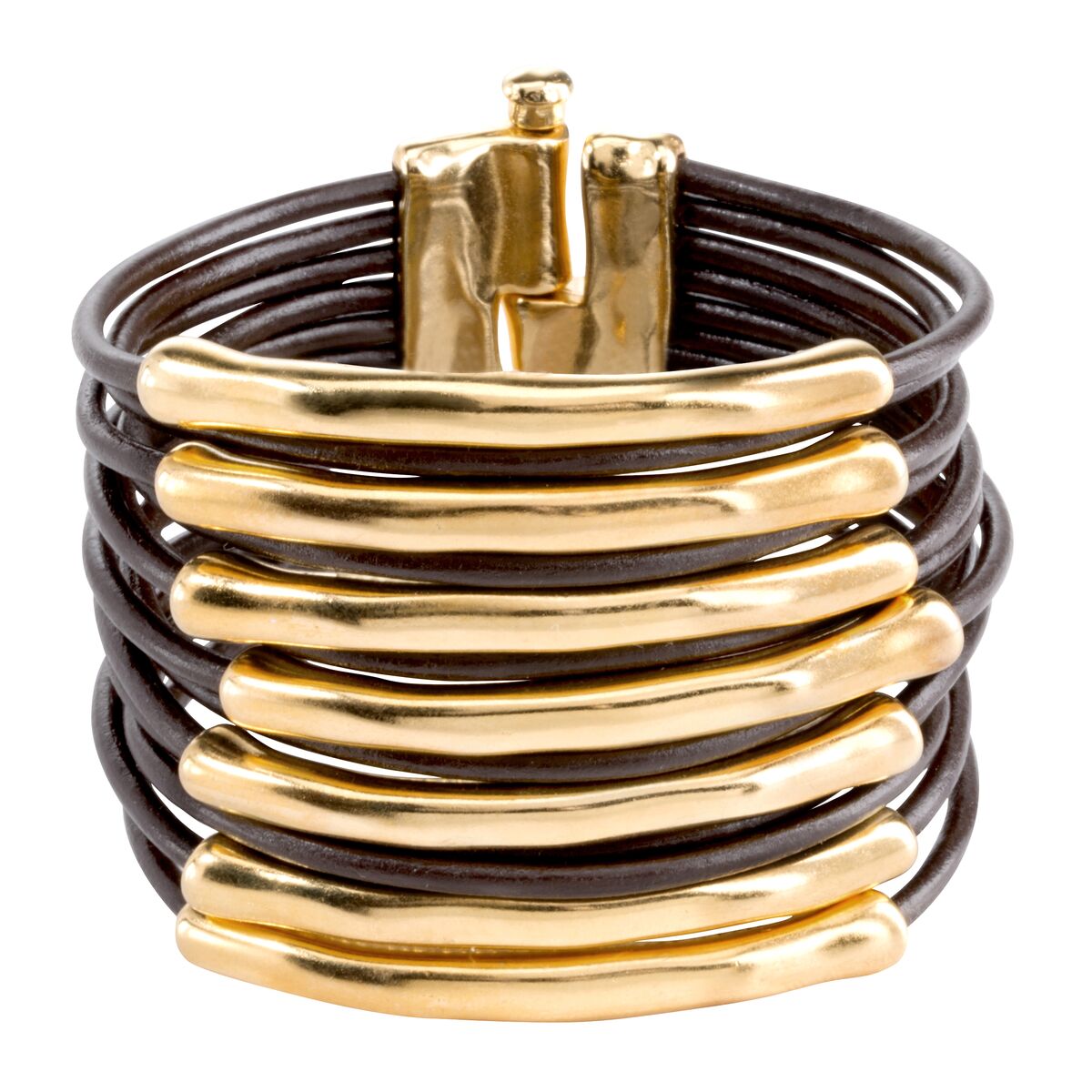 Золотой браслет женский широкий на кожаных ремешках UNOde50 Tu bi Molt
