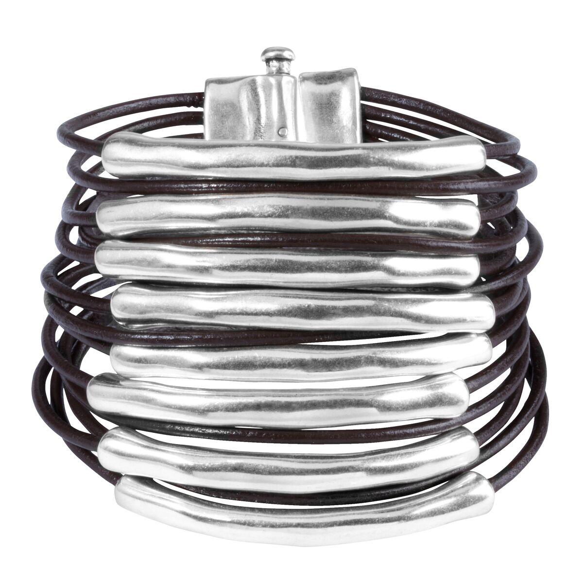Серебряный браслет широкий из кожаных шнурков UNOde50 Tu bi Molt