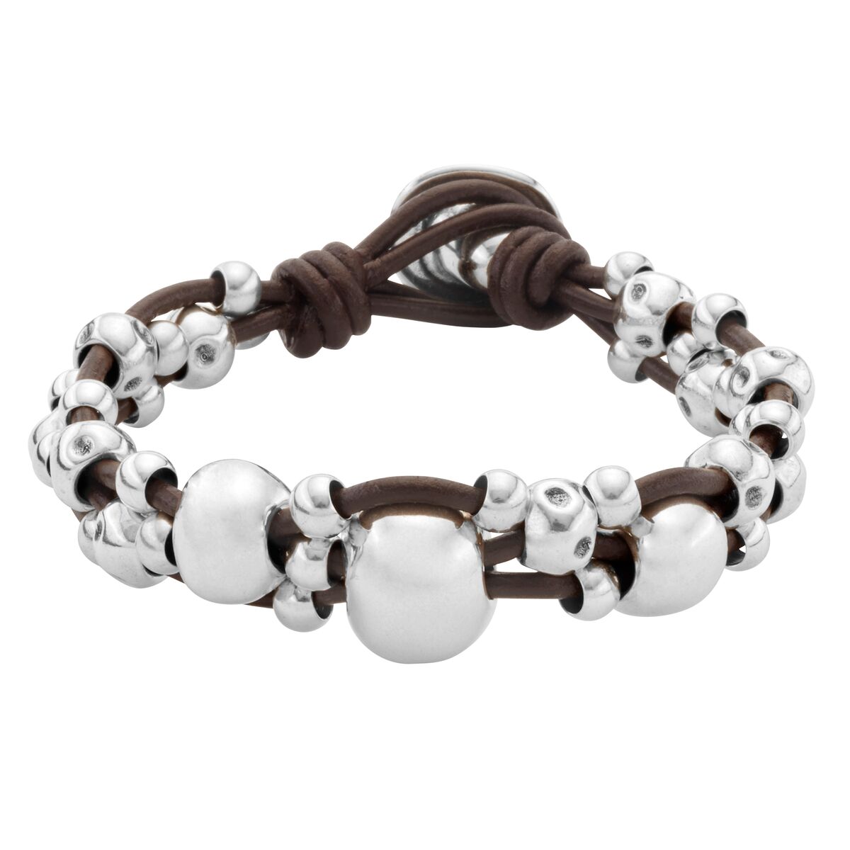 Особенности Женский браслет серебряный из кожи с бусинами разного размера UnoDe50 Vitamins