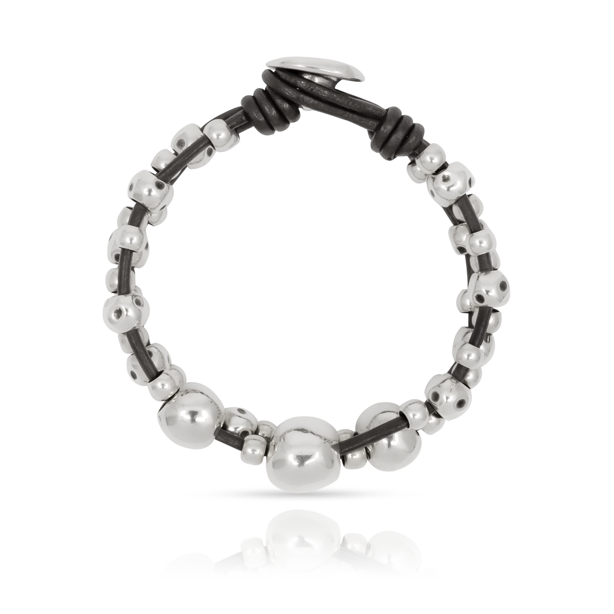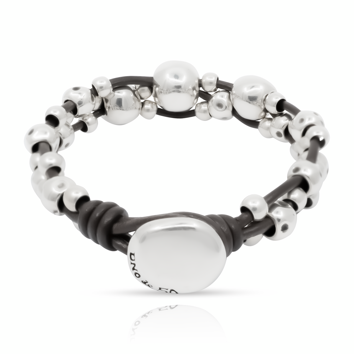 Описание Женский браслет серебряный из кожи с бусинами разного размера UnoDe50 Vitamins