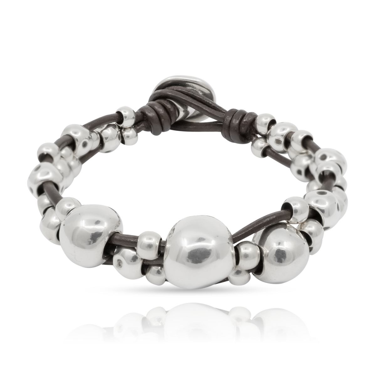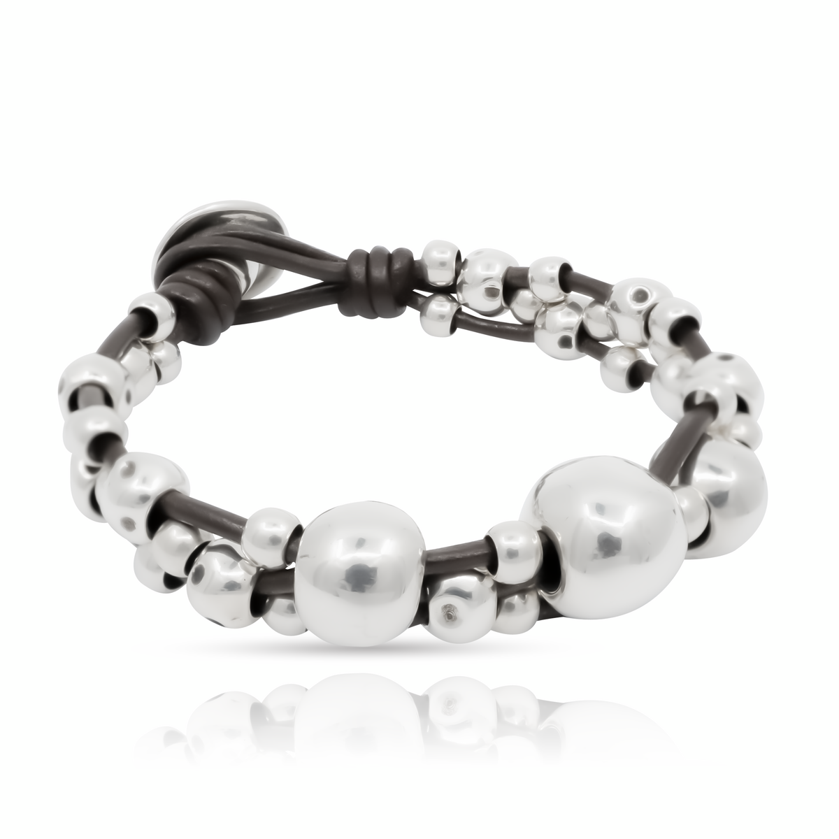 Женский браслет серебряный из кожи с бусинами разного размера UnoDe50 Vitamins