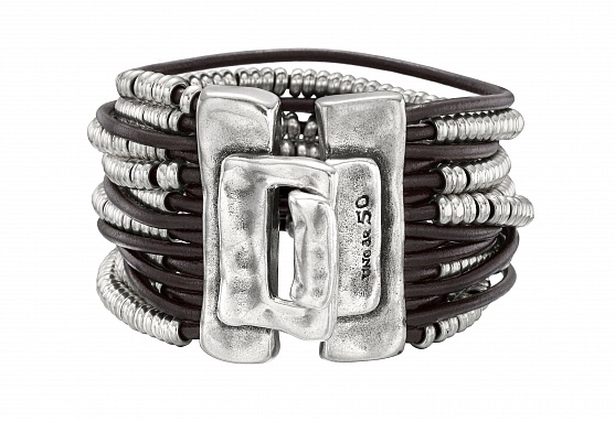 Кожаный браслет женский с серебряными вставками UNOde50 Warning