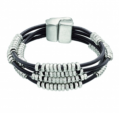 Кожаный браслет женский с серебряными вставками UNOde50 With chaping