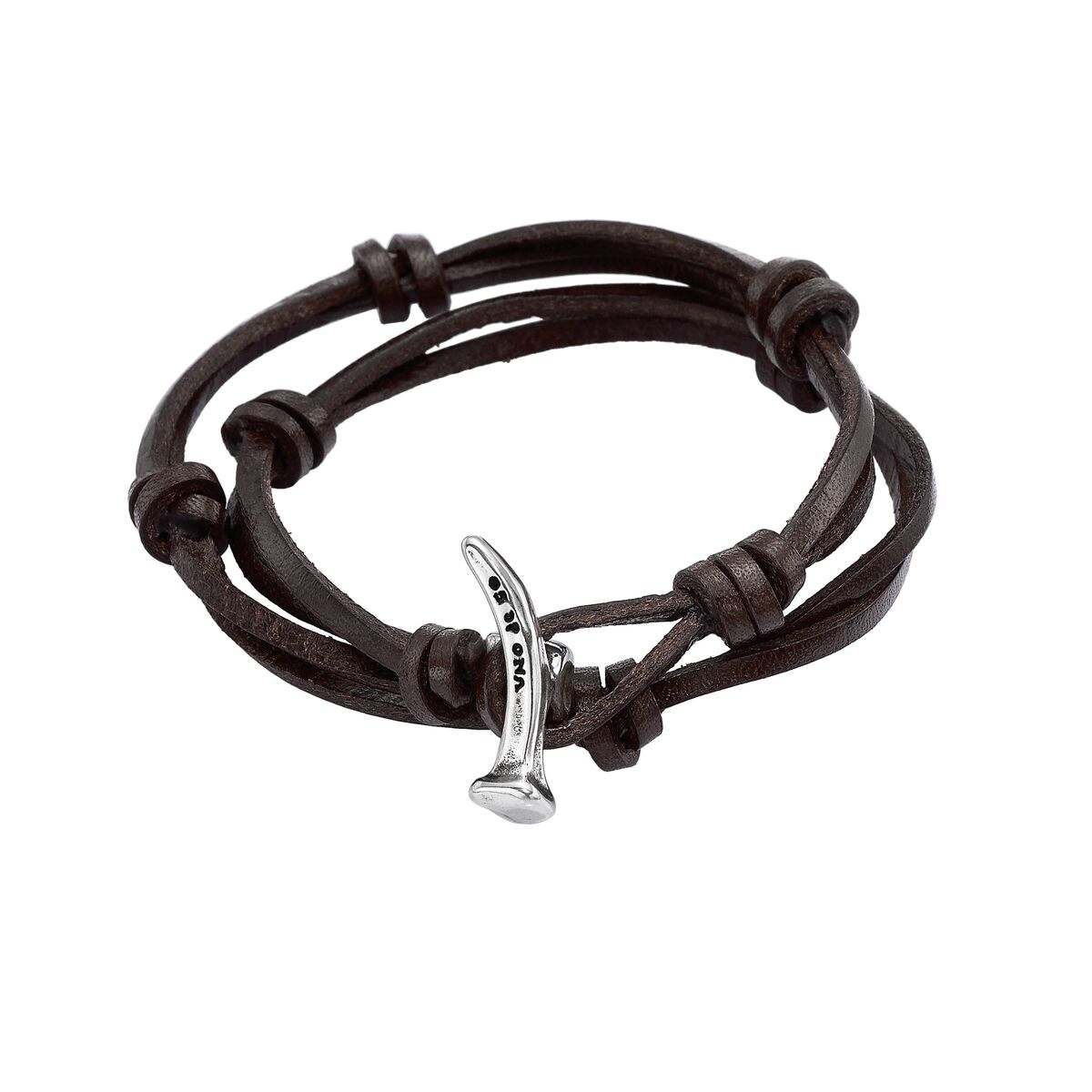 Кожаный браслет с серебряными вставками мужской UNOde50 Without thinking