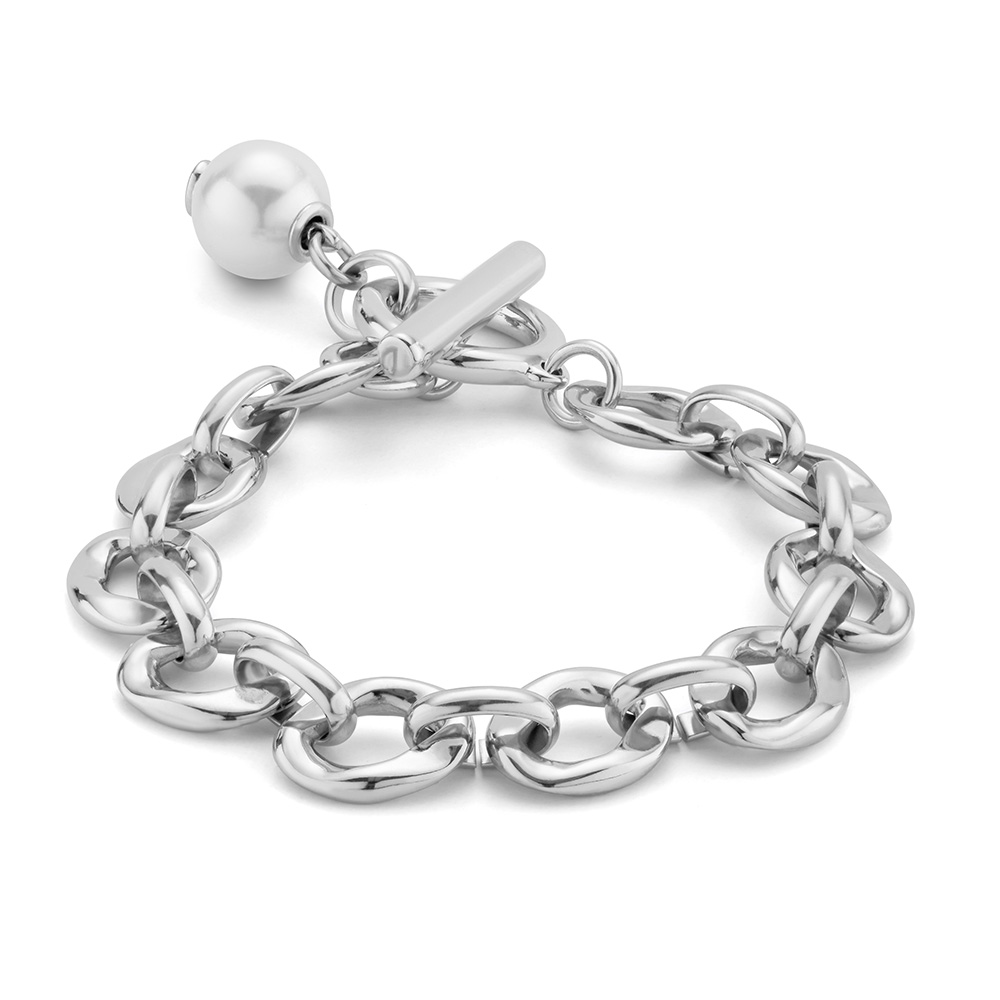 Чудесный браслет Yolo с серебром - впечатляющий образец элегантности и стиля. Выполненный как цепь с крупными звеньями он имеет центральный элемент в виде необычной застежки, соединяющей круг и планку с фирменной гравировкой. Подвеска-жемчужина завершает композицию, создавая нежный акцент. Это эксклюзивное украшение ручной работы из уникального ювелирного сплава одинаково хорошо подходит как для повседневного использования, так и в качестве вечернего украшения. Еще ярче проявить свою индивидуальность и создать целостный образ можно дополнив браслет ожерельем арт. COL1844BPLMT.