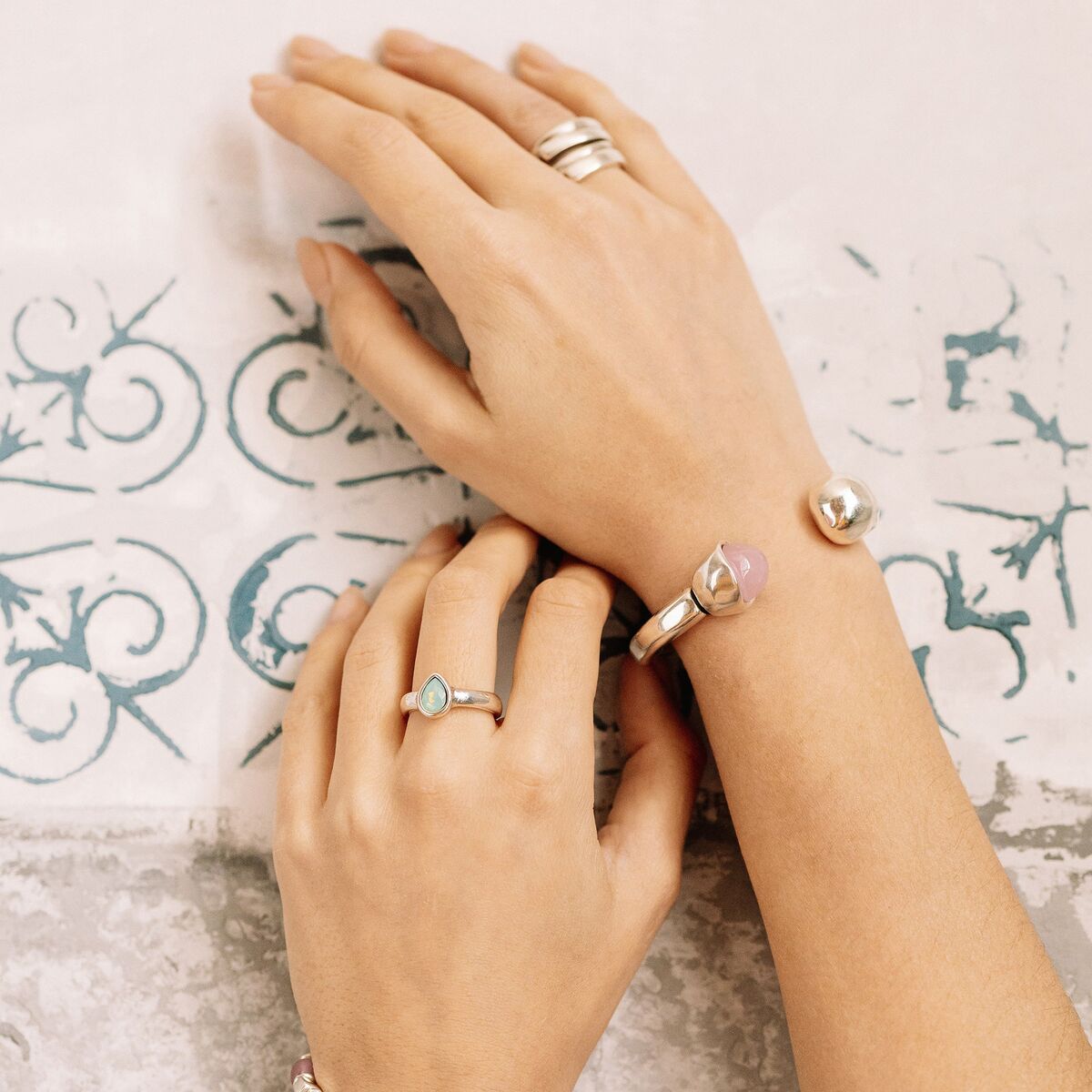 Браслет Zen to you не только прекрасно впишется в любой образ, но подарит вам равновесие и душевную гармонию. Мягкие формы и округлые элементы на незамкнутой дуге выглядят невероятно женственно и стильно. Сочетайте украшение с повседневной одеждой или в вечерним нарядом – оно уместно везде. Браслет ручной работы сделан в Испании.