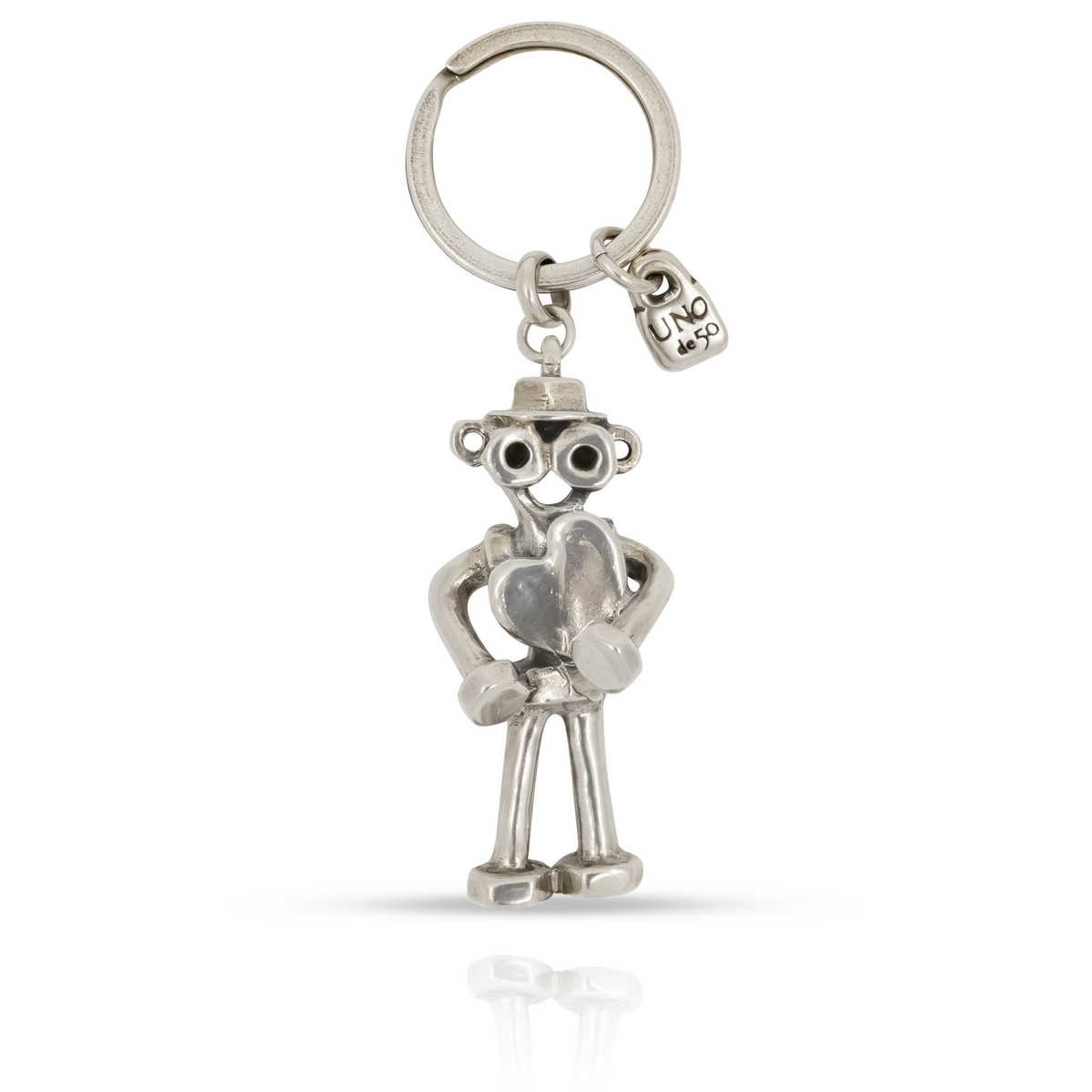 Уникальные украшения ручной работы UNOde50. Брелок Mr. Grateful из коллекции Metamorphosis. Размер ONE SIZE. Цвет серебряный.