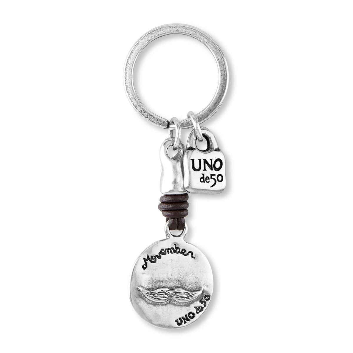 Брелок для ключей с круглой монеткой-посланием на кожаном шнурке UNOde50 Mr. Moustache