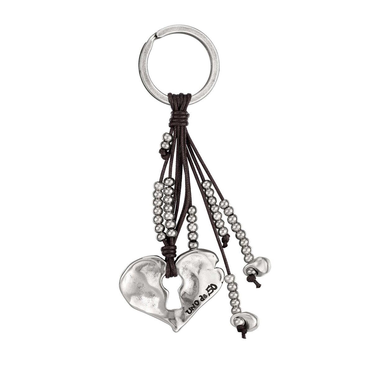 Брелок для ключей с серебряными деталями и кожей Сердце UNOde50 Where's my key?