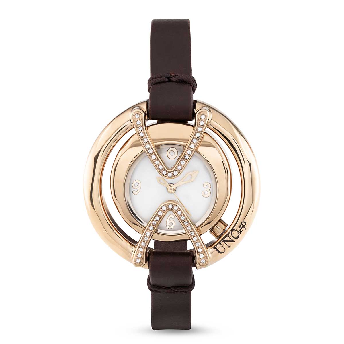 Наручные часы женские золотые на кожаном ремешке с топазами UNOde50 Daring Topaz