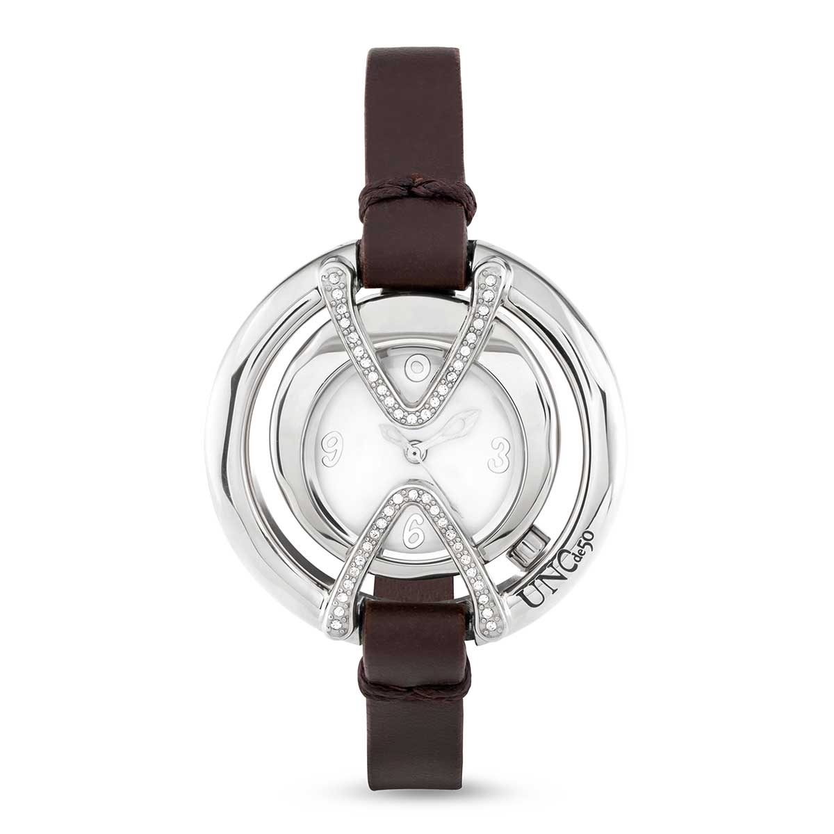 Описание Наручные часы женские серебряные на кожаном ремешке с топазами UNOde50 Daring Topaz