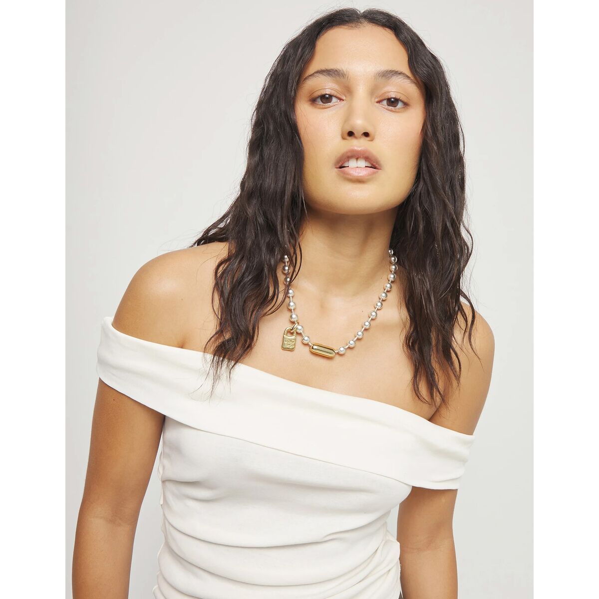 Ожерелье «Многоточие» — украшение из коллекции Beat, созданное из метафоры паузы и продолжения. Ровный ряд бусин овивает шею, а вытянутый элемент с золотым покрытием становится паузой — тем самым моментом многозначительной тишины. Это украшение про внутреннее «еще» и загадочную недосказанность.