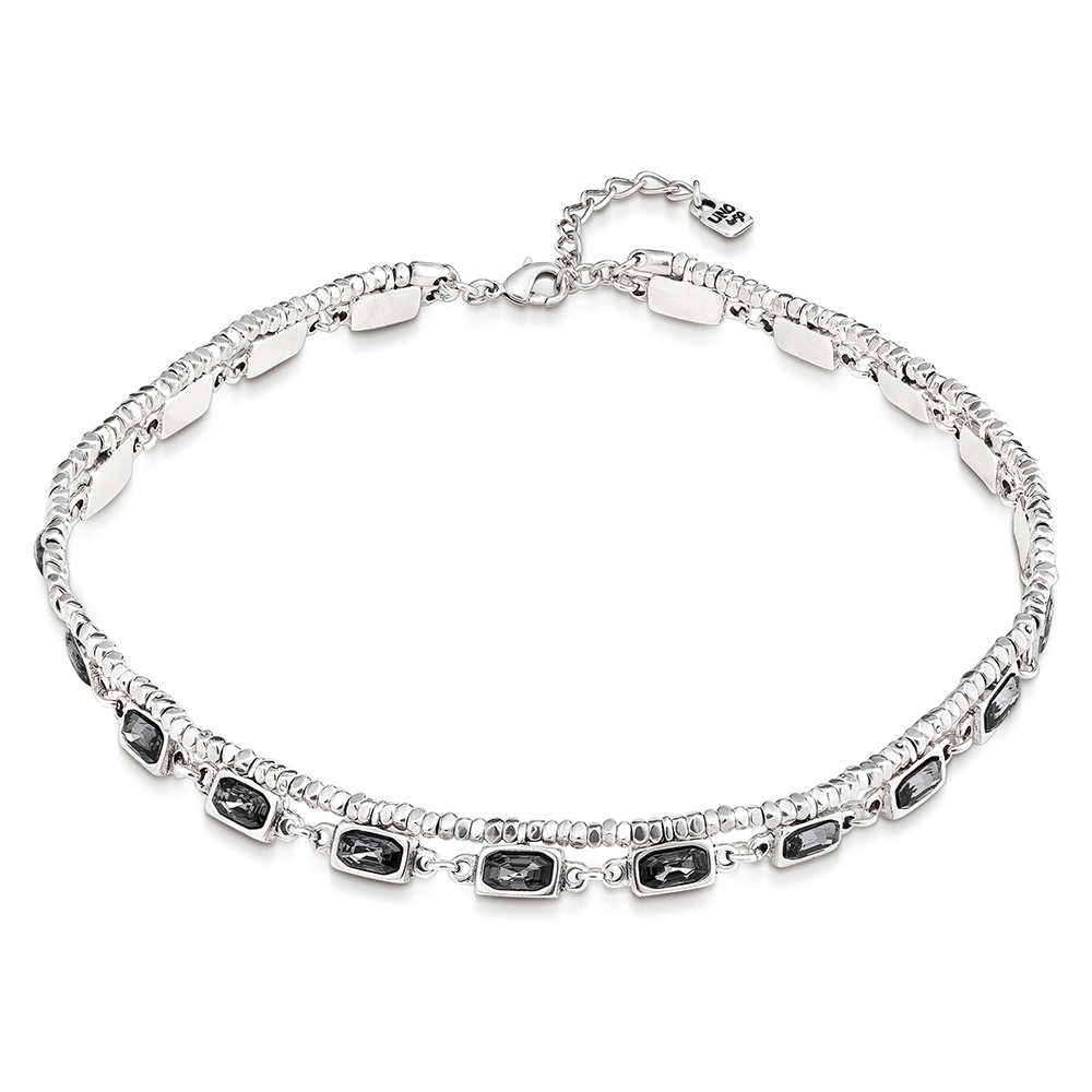 Описание Серебряное колье женское из темно-серых кристаллов Swarovski UNOde50 Асклепий.