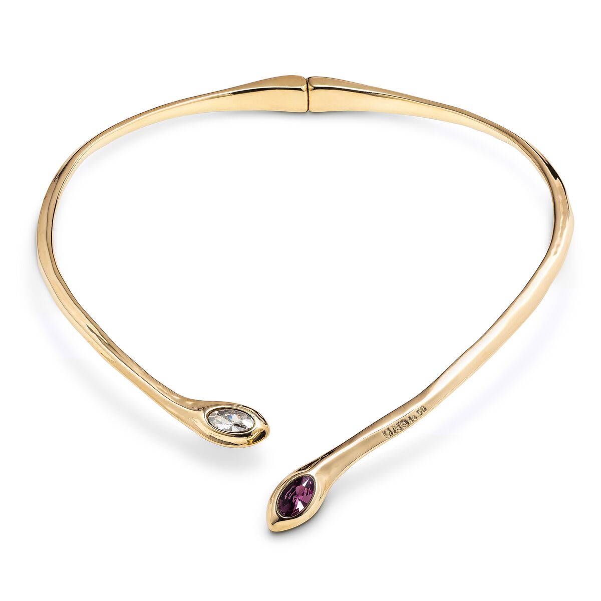Золотое колье-чокер женское жесткое с кристаллами Swarovski UNOde50 Spring