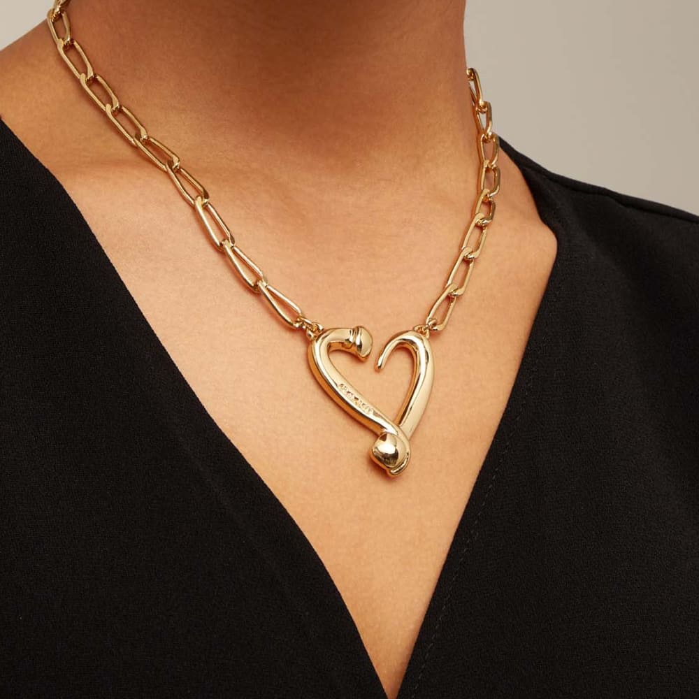Золотая цепочка женская с подвеской Сердце из двух гвоздей UNOde50 One Love