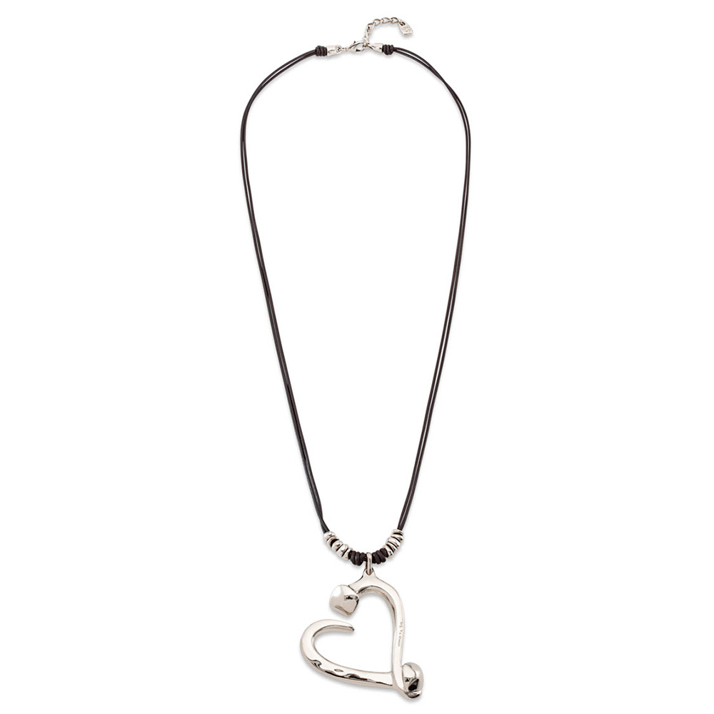 Колье с серебряным сердцем из двух гвоздей на кожаных шнурках UNOde50 BIG LOVE