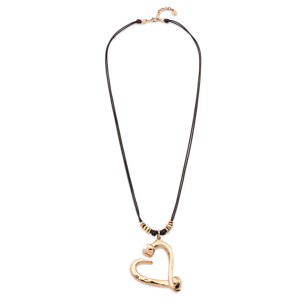 Колье с золотым сердцем из двух гвоздей на кожаных шнурках UNOde50 BIG LOVE
