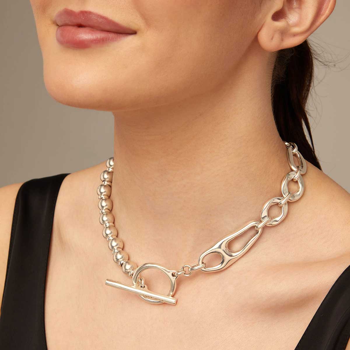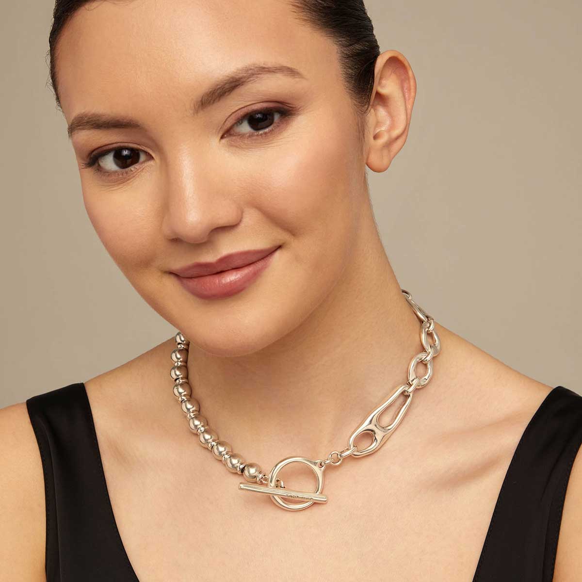 Серебряное колье женское с комбинированными звеньями UNOde50 Cheerful