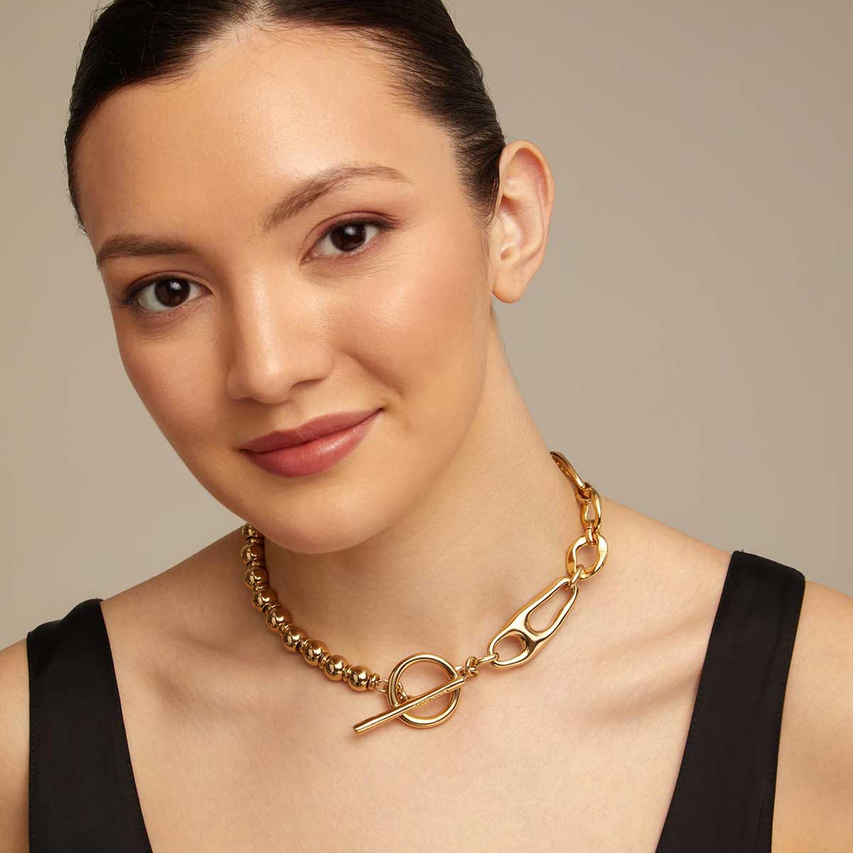 Золотое колье женское с комбинированными звеньями UNOde50 Cheerful