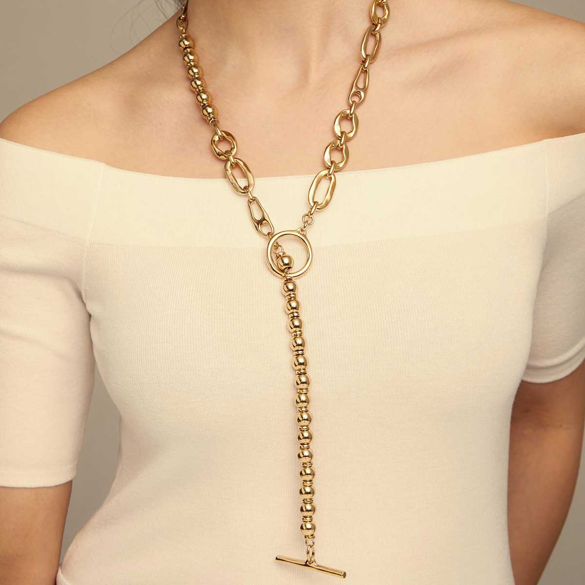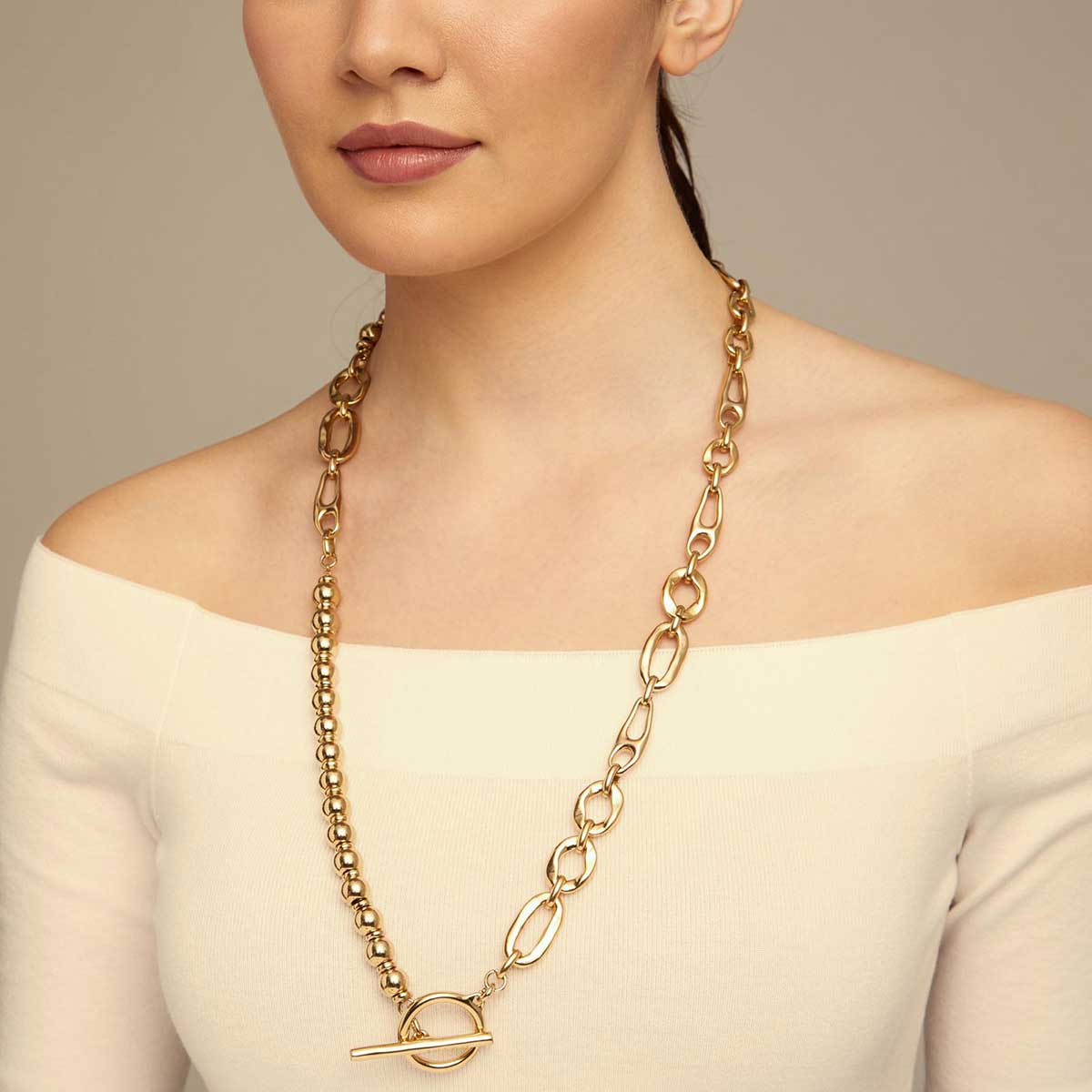 Описание Золотое колье женское с комбинированными звеньями UNOde50 Yolo