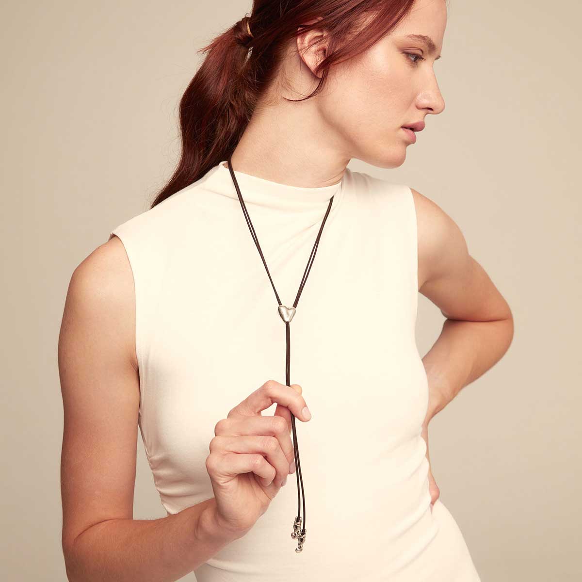 Кожаное колье женское с серебром Влюбленная пара UNOde50 Pretty Love