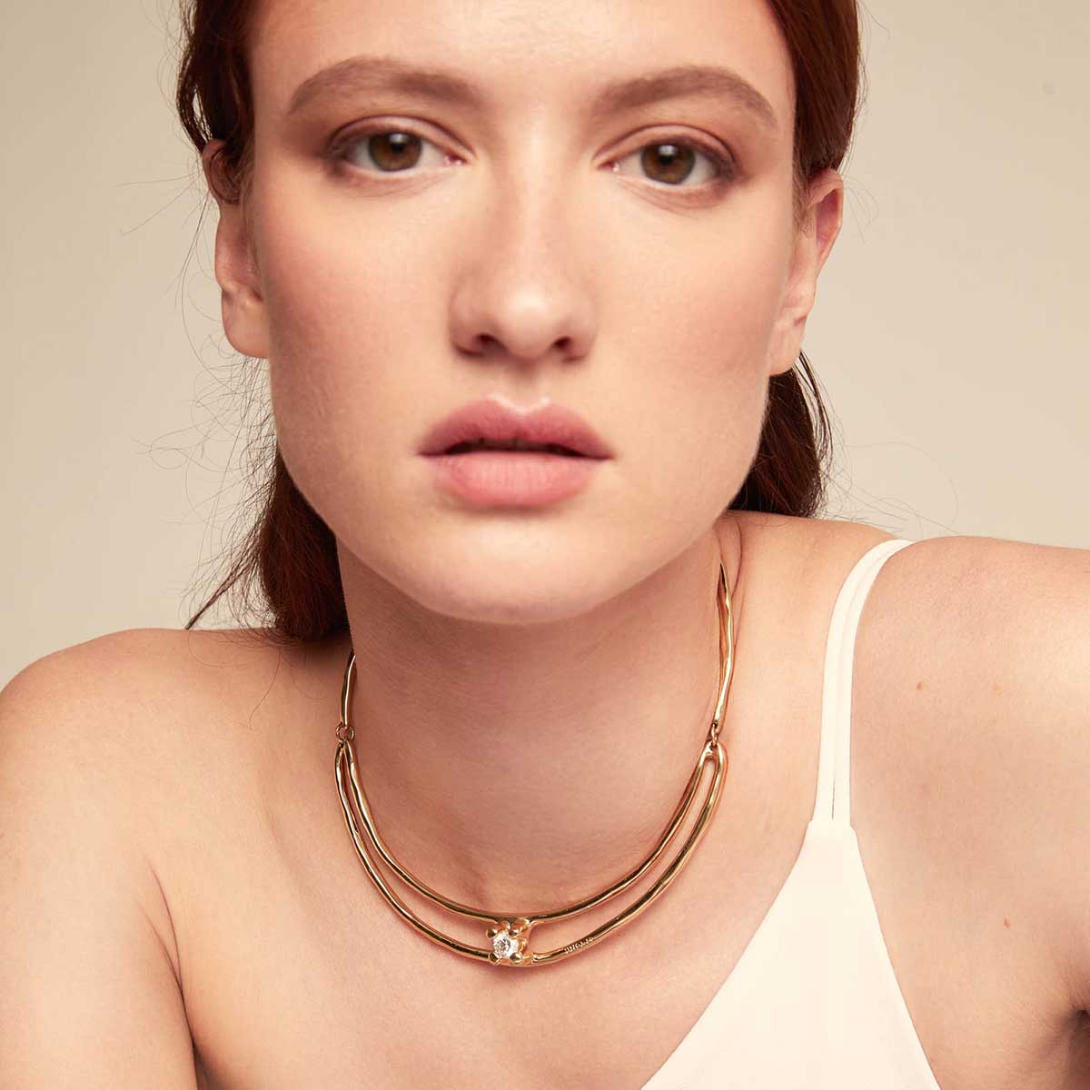 Золотое колье женское двойное с цирконием UNOde50 Anima