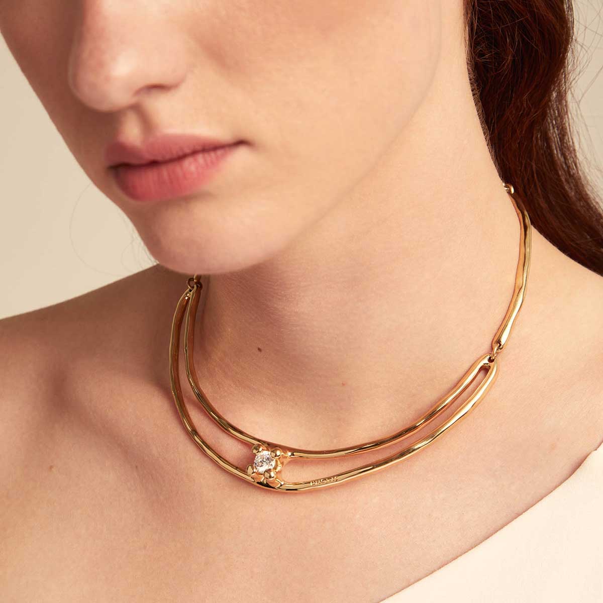 Описание Золотое колье женское двойное с цирконием UNOde50 Anima