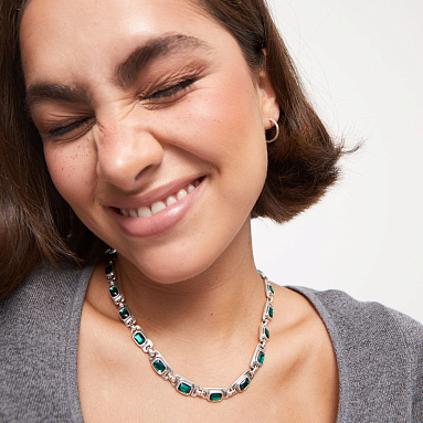 Ощутите притягательность изысканной роскоши благодаря ожерелью Ser Magnetica с зелеными кристаллами, с серебром. Завораживающие граненые кристаллы этого колье заключены в оправу из уникального сплава с серебрением, что придает украшению великолепный блеск. Камни, сияющие глубоким насыщенным оттенком, создают эффектный контраст с серебряной основой, привлекая взгляды и добавляя особую элегантность вашему образу. Благодаря удлинительной цепочке вы сможете добиться идеальной посадки. А фирменный замочек подчеркнет эксклюзивность аксессуара. Выполненное вручную украшение, сочетающее в себе стиль и качество, способно стать ярким акцентом как на деловом, так и на вечернем мероприятии. Это ожерелье поможет продемонстрировать ваш изысканный вкус и станет символом уверенности, независимости и красоты.