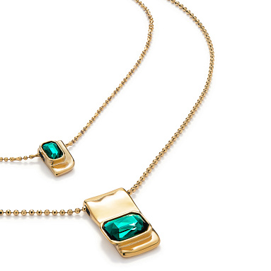 Почувствуйте волшебство стиля с уникальным ожерельем Ser Magnetica с зелеными кристаллами, с золотом. Это двухуровневое украшение, состоящее из укороченной и длинной цепочки, выглядит одновременно элегантно и современно, добавляя образу глубину и утонченность. На верхнем уровне расположен небольшой, аккуратный зеленый кристалл, а на нижнем — более крупный камень. Глубокий оттенок привлекает внимание своей насыщенностью и символизирует природную гармонию. Цепочки и обрамление кристаллов выполнены из позолоченного сплава. Органичное сочетание элементов придает изделию легкость и визуальный баланс, делая его универсальным аксессуаром для любого случая. Каждая деталь этого колье создана вручную, что подчеркивает эксклюзивность украшения и говорит о высоком уровне мастерства.