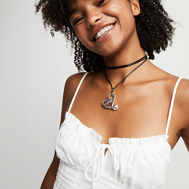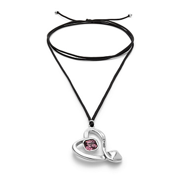 Выразите свою индивидуальность с помощью текстильного ожерелья Ser Expresiva с розовым кристаллом, с серебром. Это уникальное украшение сочетает в себе сразу несколько элементов, дополняющих друг друга: черный текстиль, посеребренный сплав и нежный розовый кристалл. Основу украшения составляют текстильные шнурки, которые мягко облегают шею, создавая контраст с металлической подвеской. Кулон, покрытый серебром и выполненный в форме стилизованного сердца, олицетворяет любовь и гармонию. Загадочно мерцающий кристалл придает композиции особенную глубину и выразительность. Длина изделия регулируется, чтобы достичь наилучшей посадки. Эффектное и стильное украшение сразу привлекает внимание своим авторским дизайном и не останется незамеченным, куда бы вы ни пошли.