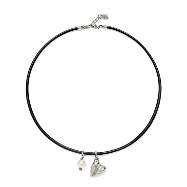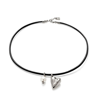 Описание Кожаное ожерелье серебряное с подвеской и жемчугом UNOde50 Ser Unico