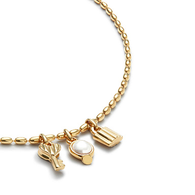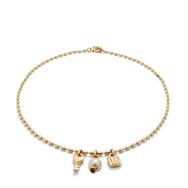 Описание Женское ожерелье золотое цепочка с подвесками и жемчугом UNOde50 Ser Unico