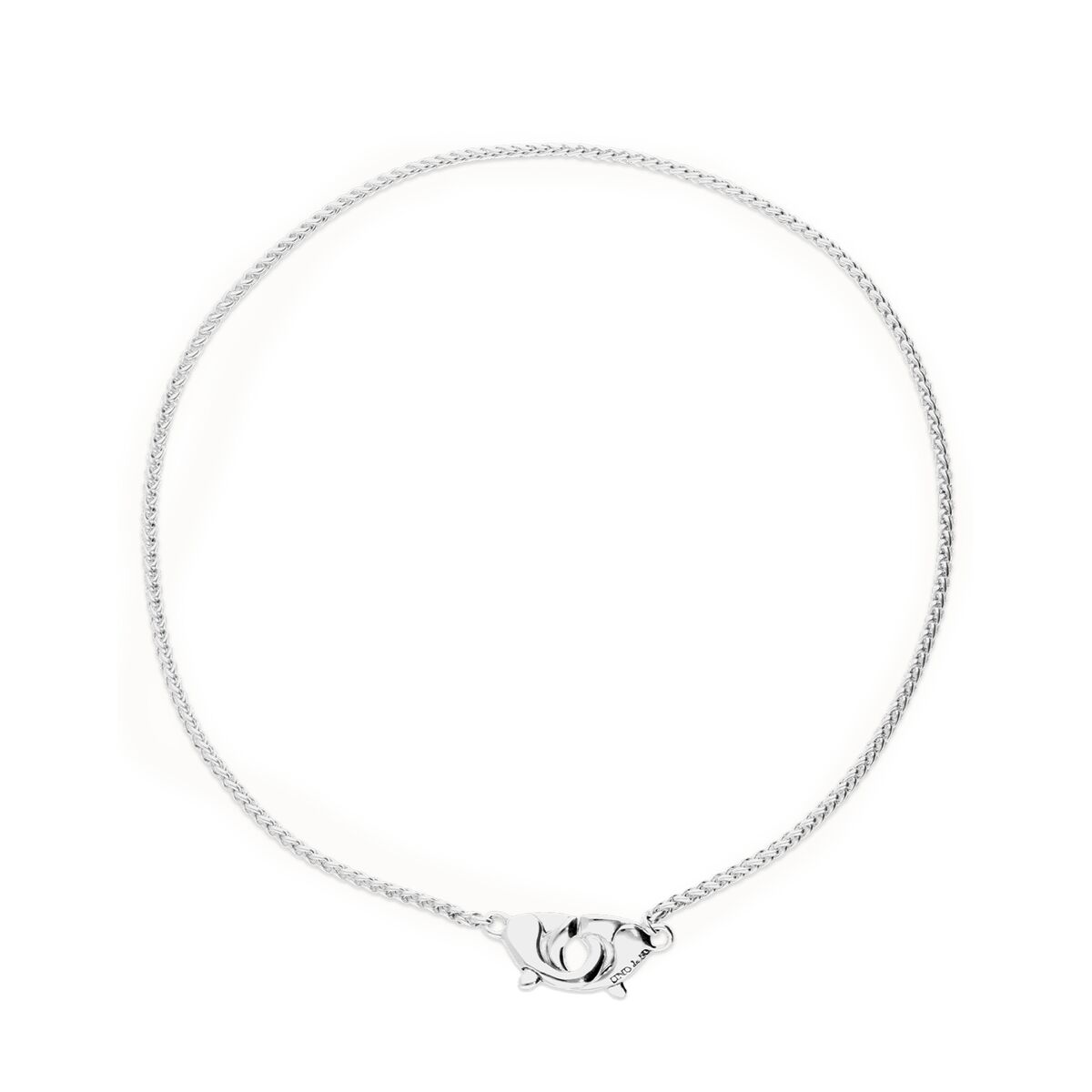 Посеребренный карабин — символ связи, прочной и честной, будто говорит: «Я держу — и не отпущу». Матовая поверхность и холодный блеск серебра подчёркивают силу минимализма: здесь нет ничего лишнего, только чистая форма и уверенность в деталях.