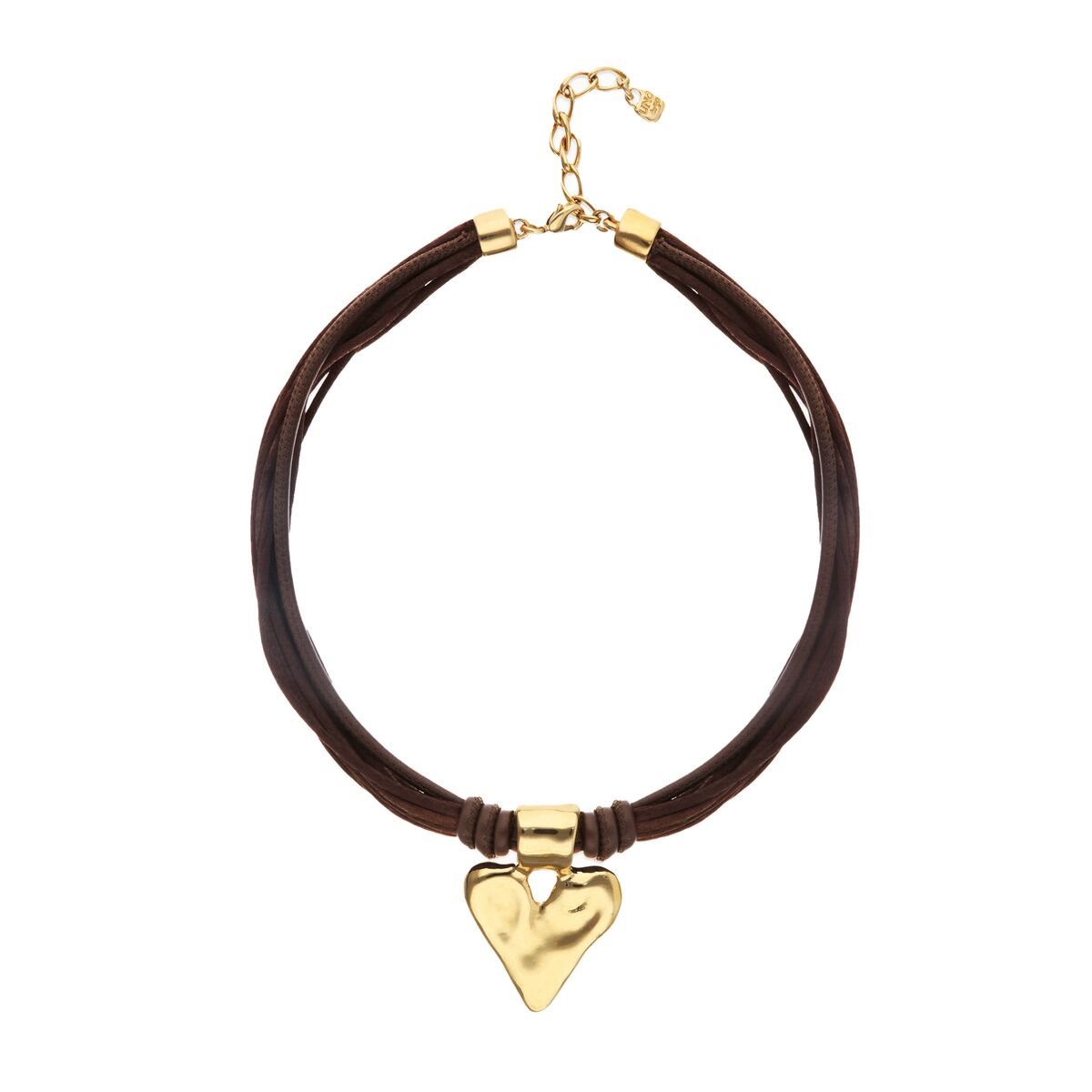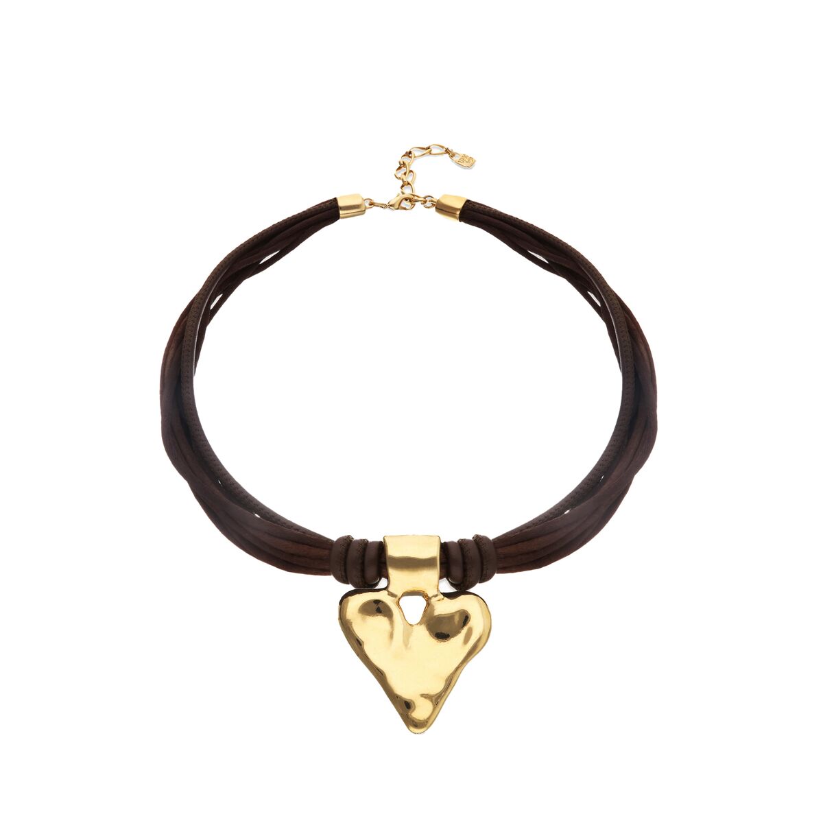 Кожаное колье с золотым сердцем UNOde50 Beat