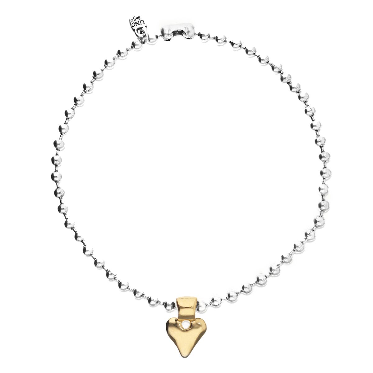 Серебряное колье с золотым сердцем UNOde50 Beat