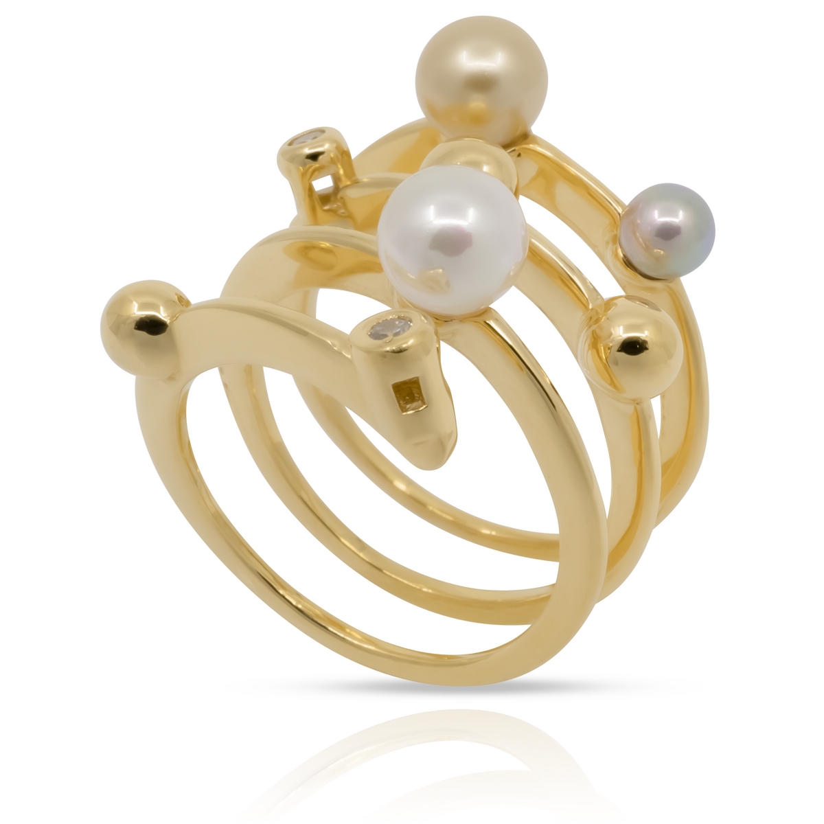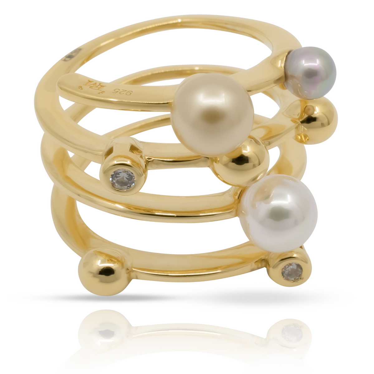 Золотое кольцо женское с жемчугом Majorica Timeless