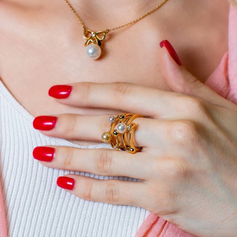 Особенности Золотое кольцо женское с жемчугом Majorica Timeless