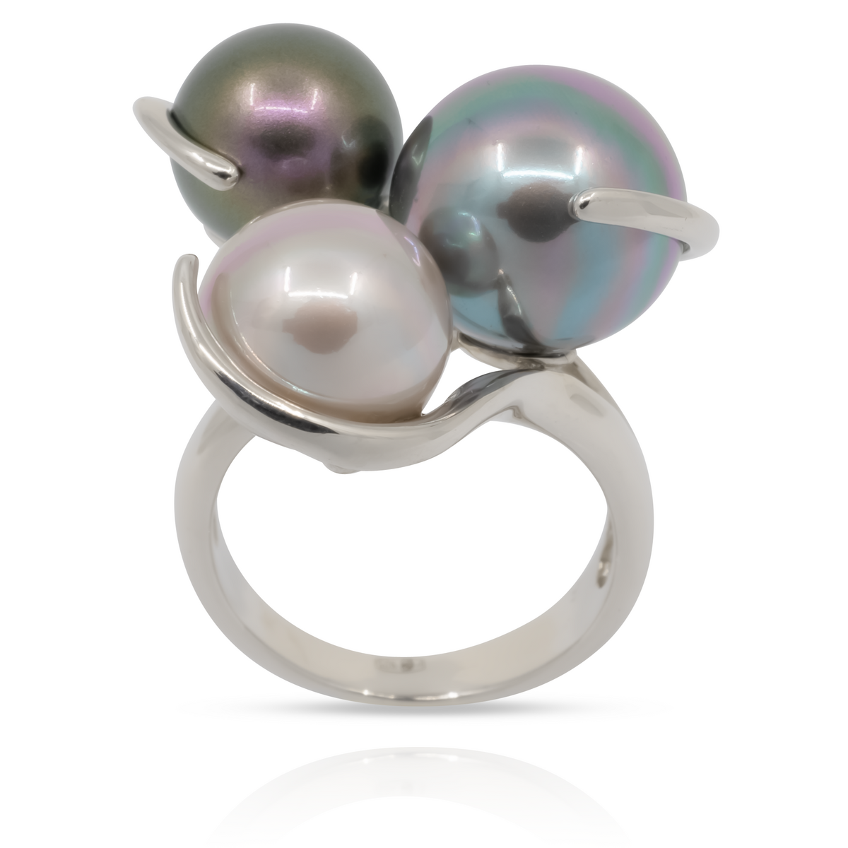 Кольцо Majorica из коллекции Estela, артикул, серебро 925 пробы, гальваническое покрытие родием, вставки: жемчуг органический.