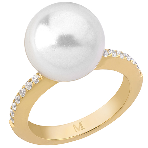 Описание Кольцо женское с белым жемчугом и кубиками циркония Majorica Enchantment