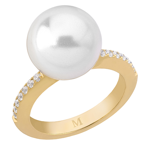 Особенности Кольцо женское с белым жемчугом и кубиками циркония Majorica Enchantment